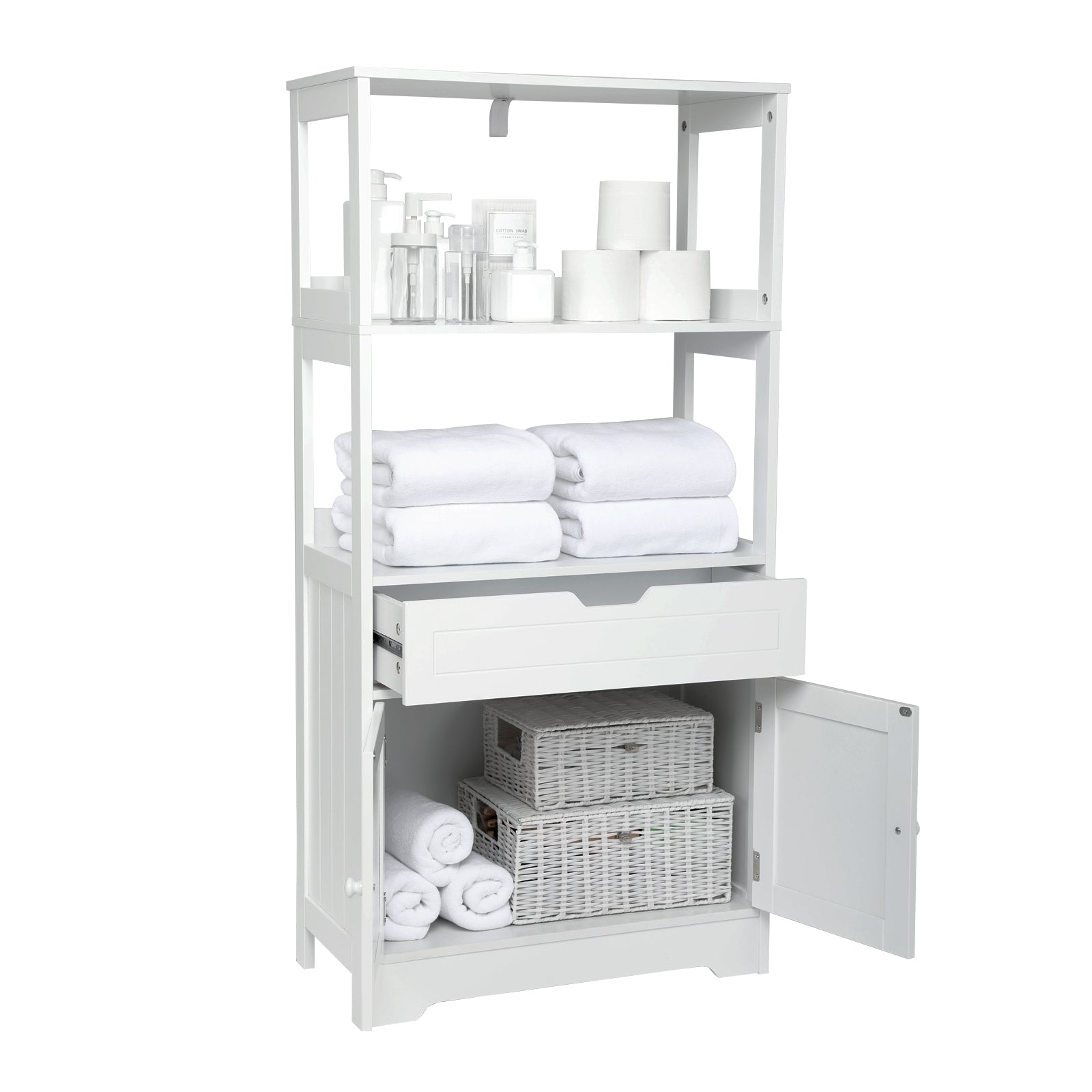 • Elegant Style - The white and elegant appearance of this cabinet can be perfectly integrated with various decorative styles. It is the ideal furniture for your bathroom, living room, kitchen, and other rooms.
