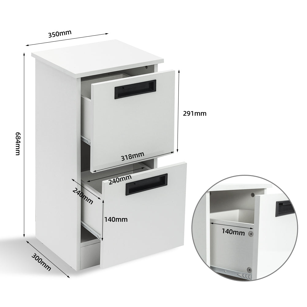 Freestanding Bathroom Cabinet, 2 Drawers and Black Pulls