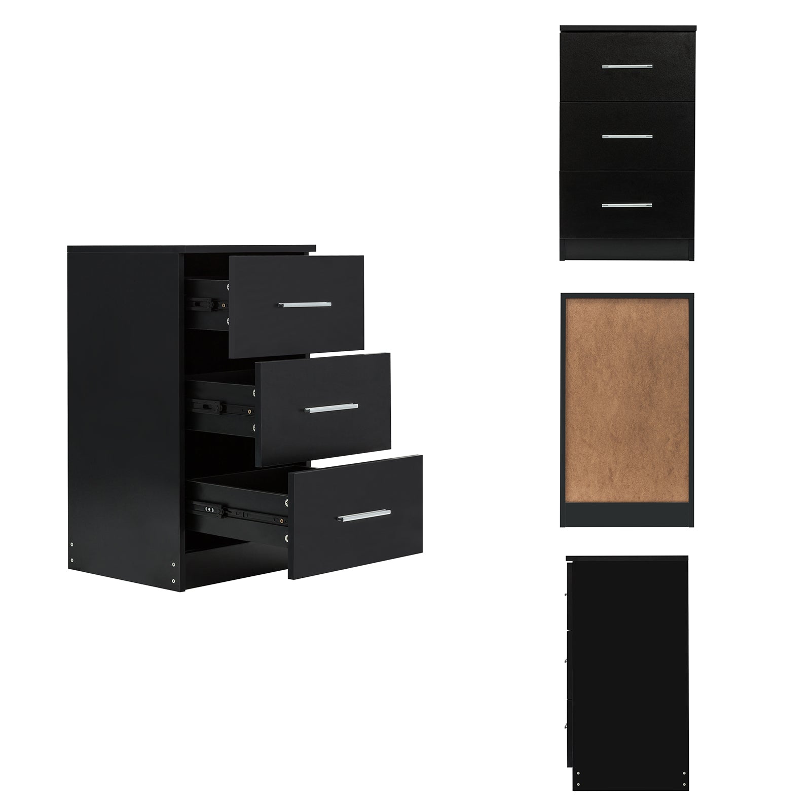 Bedside Cabinet, White/ Black Color, Matte Coating, 3 Drawers