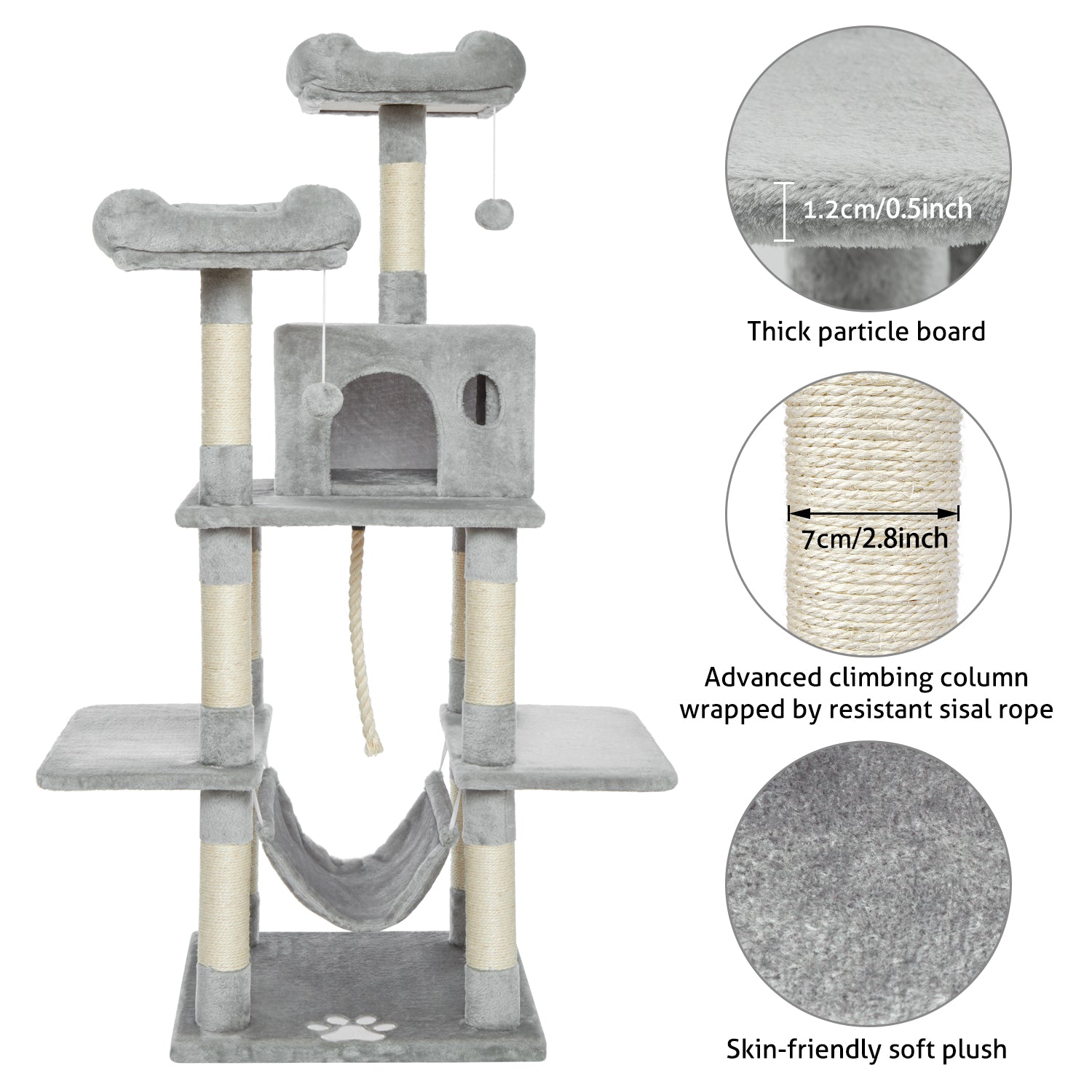 - Hey, you should buy a cat tree with a 150cm high stand for me. This cat tree has four gradients for me to choose from. Otherwise, I always want to climb higher like the top of a cabinet, or the roof...