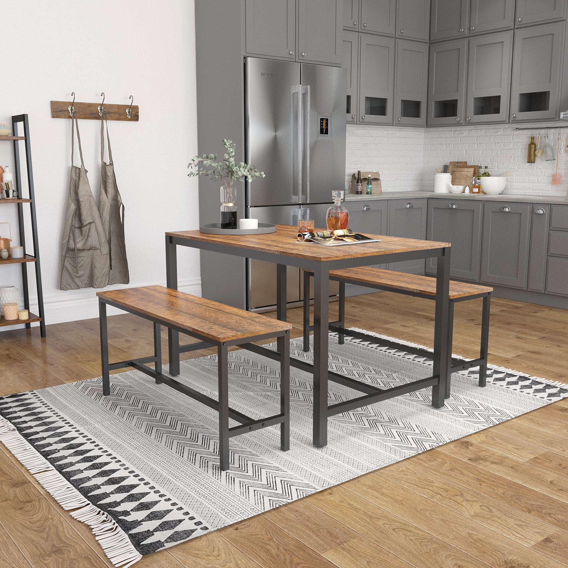 - [Dining Table Chair Set] - It is a set of table and benches with a simple design. You can place it anywhere in your home as you like.