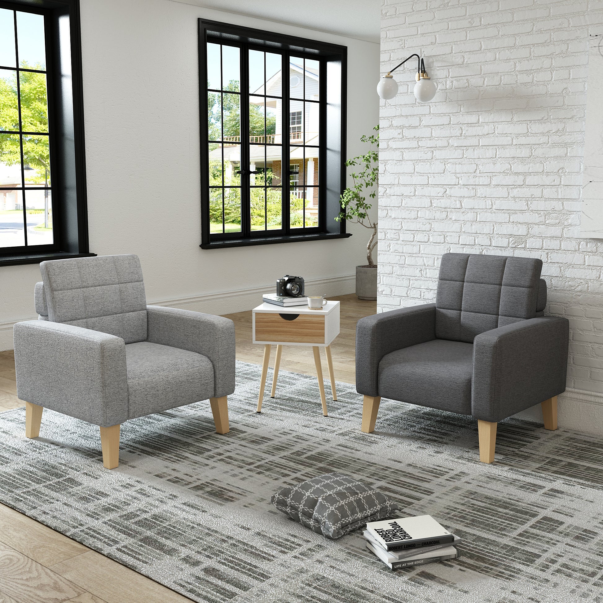 - FIRM & DURABLE – Overall modern style design with a solid wood frame inside. The sponge-covered armrest and cushion can perfectly fit the back curve. The seat back and cushion form a 115°support angle to reduce the pressure on your spine. The legs of this armchair are made of solid wood, which is stable and beautiful.