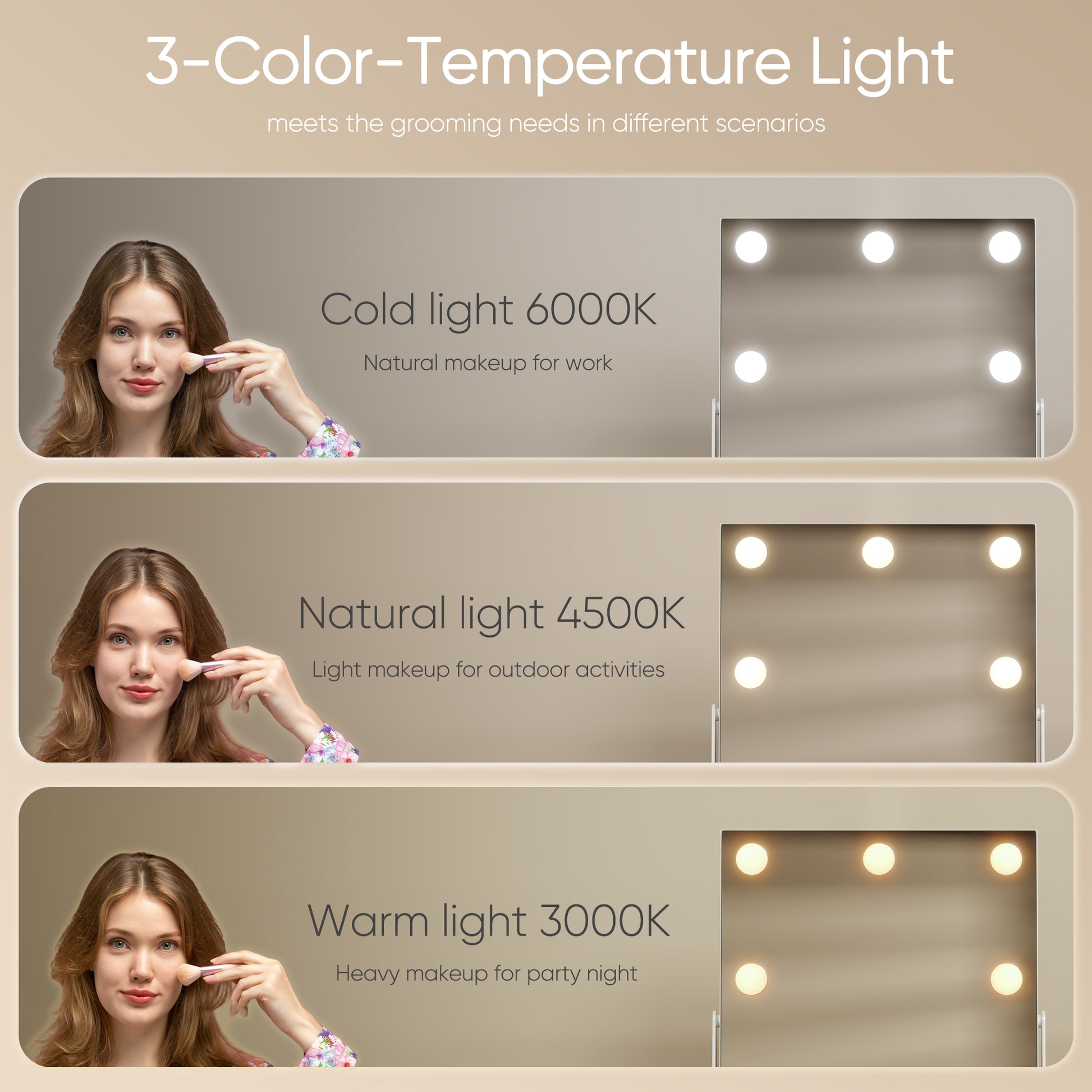 - [Lighting Memory Function] - This makeup mirror remembers the color temperature and brightness settings from your last use, so you can directly use it with your preferred settings without the need to readjust. Convenient and time-saving.