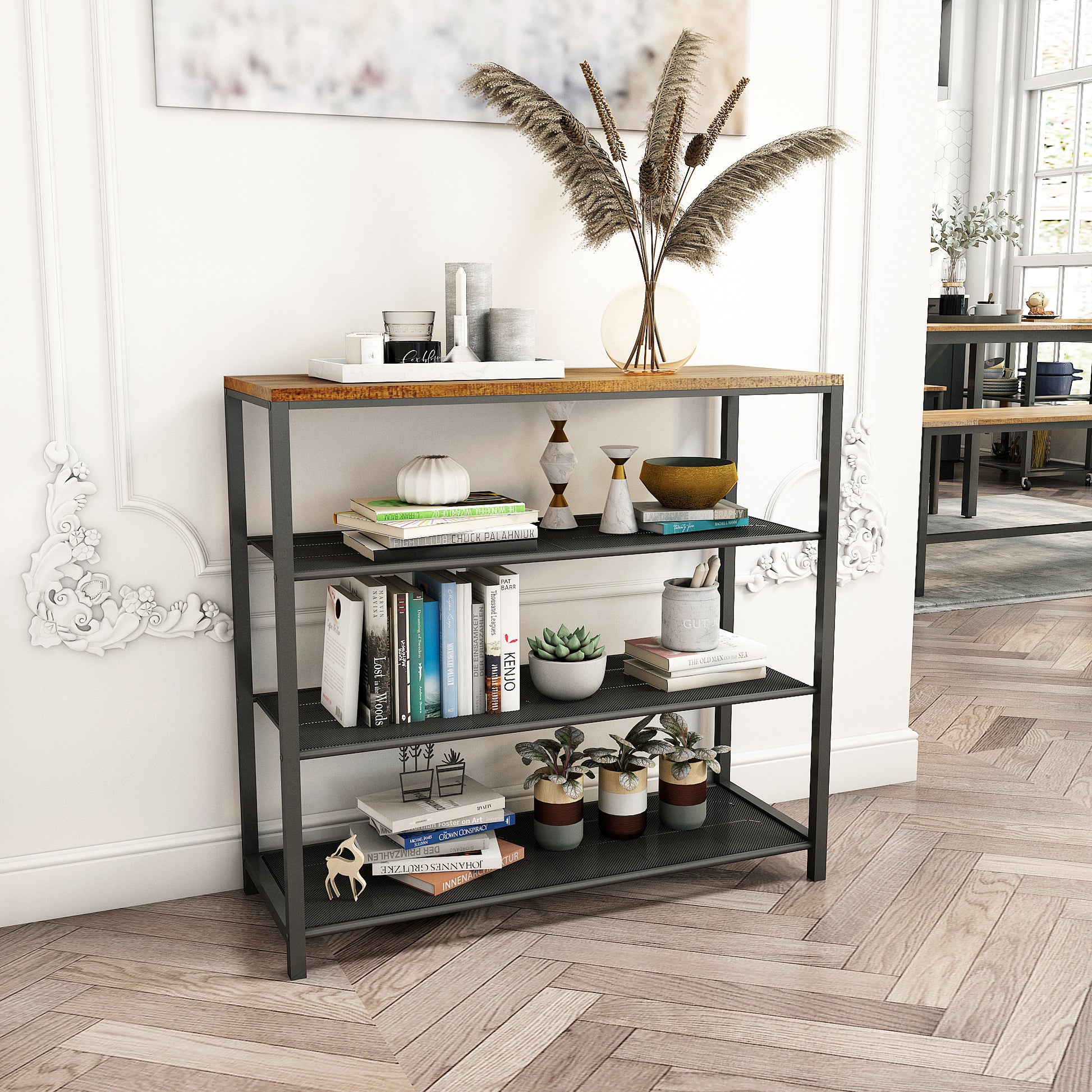 Retro Industrial Shoe Rack, Four-layer Design, Balck Painted Iron