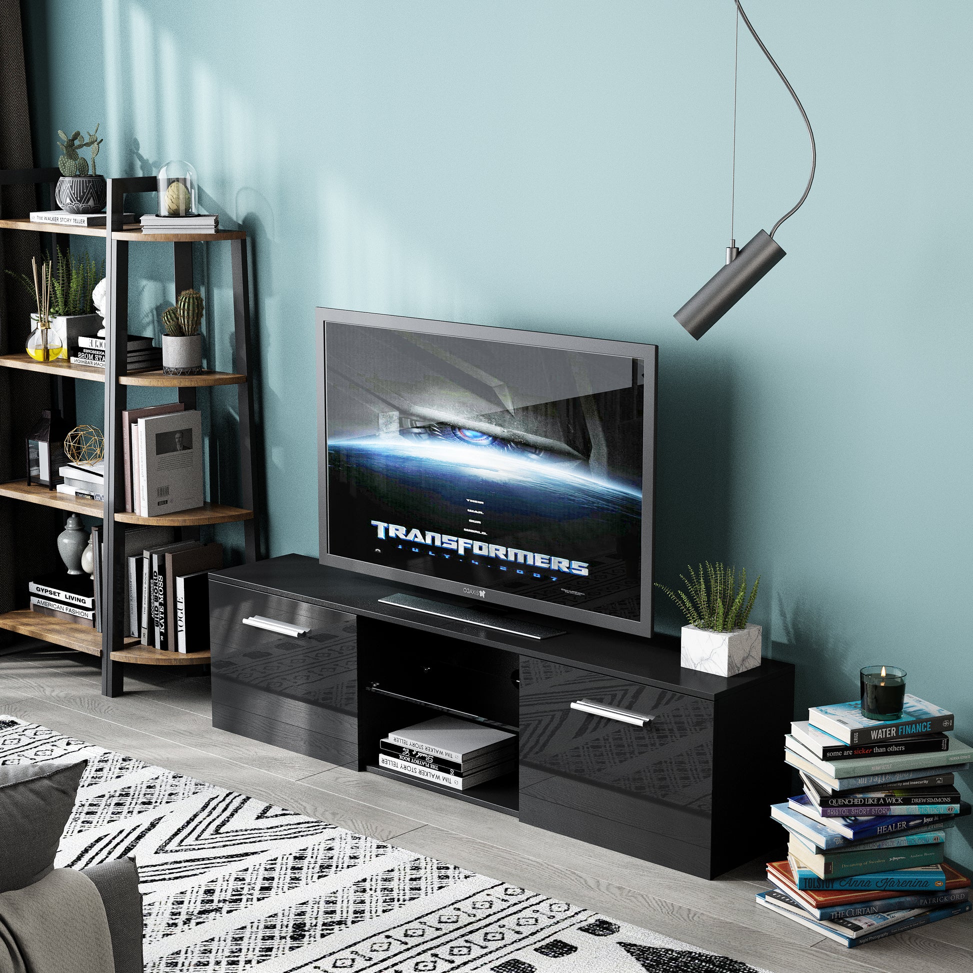 LED TV Cabinet, Black/White Color, Large Storage Space